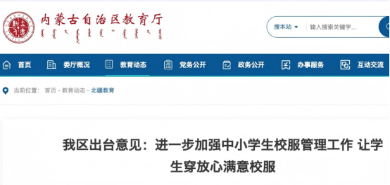 为进一步加强内蒙古自治区中小学校服管理,充分保障校服质量和安全,促进广大中小学生健康成长,营造风清气正的教育生态,近日,自治区教育厅、自治区市场监督管理局联合印发《关于进一步加强内蒙古自治区中小学校服管理工作的指导意见》(以下称《意见》),对校服管理的关键环节,提出切实可行的政策措施,形成有效的管理服务体系。