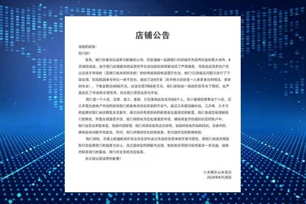 近日,“小天鹅东山专卖店”在直播销售洗衣机过程中,因电商运营人员误将全店洗衣机产品标价设置为成本价的4~5折,导致开售20分钟被薅羊毛高达7000余万元。地市场监督管理局工作人员称相关部门已介入调查。