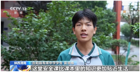 合阳县有莘中学学生 雷浩楠:这堂安全课比课本里的知识更贴近生活,我在其中也学到了遇到用电问题需要去用合理的方式去解决,我回家也要把今天所学到的知识分享给我的家人。