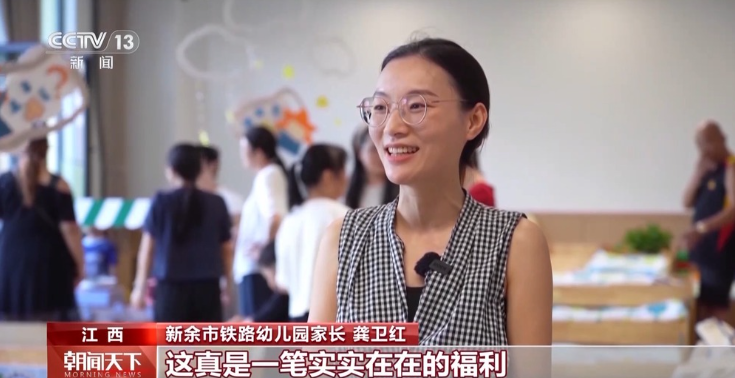 江西省新余市铁路幼儿园家长 龚卫红:以前每个月的保教费600块钱,政策实施后一年可以省五千多块钱,对于我们这种工薪家庭来说,这真是一笔实实在在的福利。