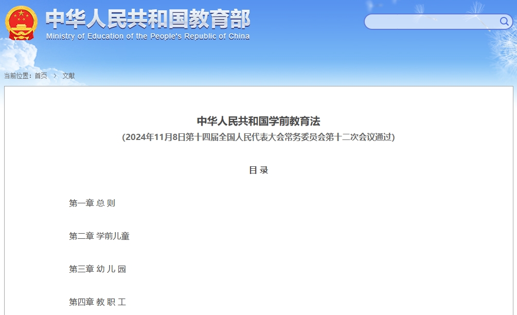 6月1日,学前教育法正式实施。