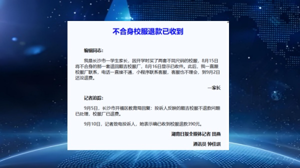 9月9日,北京市教委发布《关于进一步加强中小学生校服管理工作的意见》,提出中小学校服坚持学生自愿购买原则,学校可探索学生校服循环使用,创新校服以旧换新、以小换大等回收利用机制,减少资源浪费。